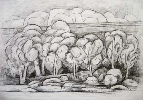 "Baumlandschaft mit Bergen"